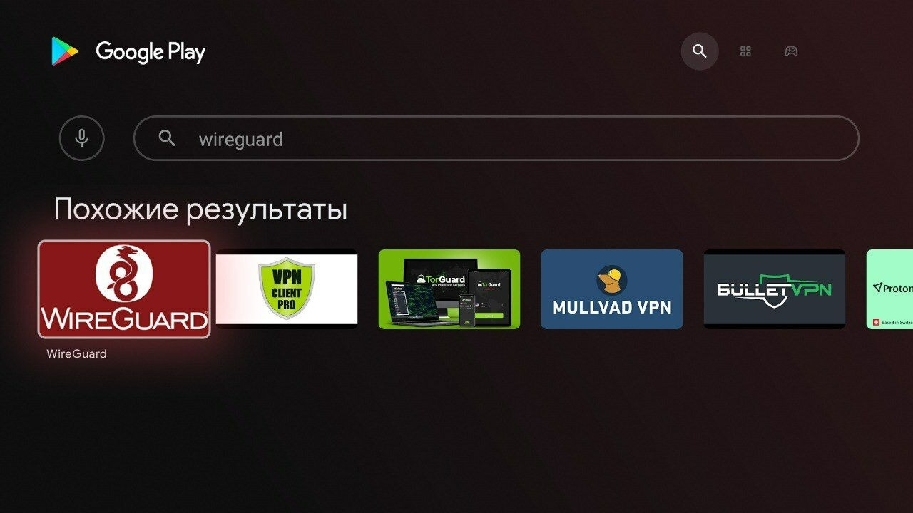- Установите на телевизор VPN-клиент WireGuard;